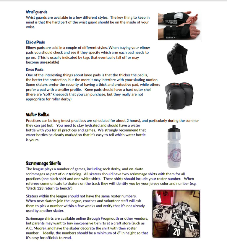 If you're thinking of joining our roller derby team, this is everything you'll need. We are super lucky to have our sponsor Bruised Boutique right in our backyard in Nashua, NH. They are a wealth of knowledge and can help you with all of your gear needs. Let them know you're skating with us and they'll give you a discount!